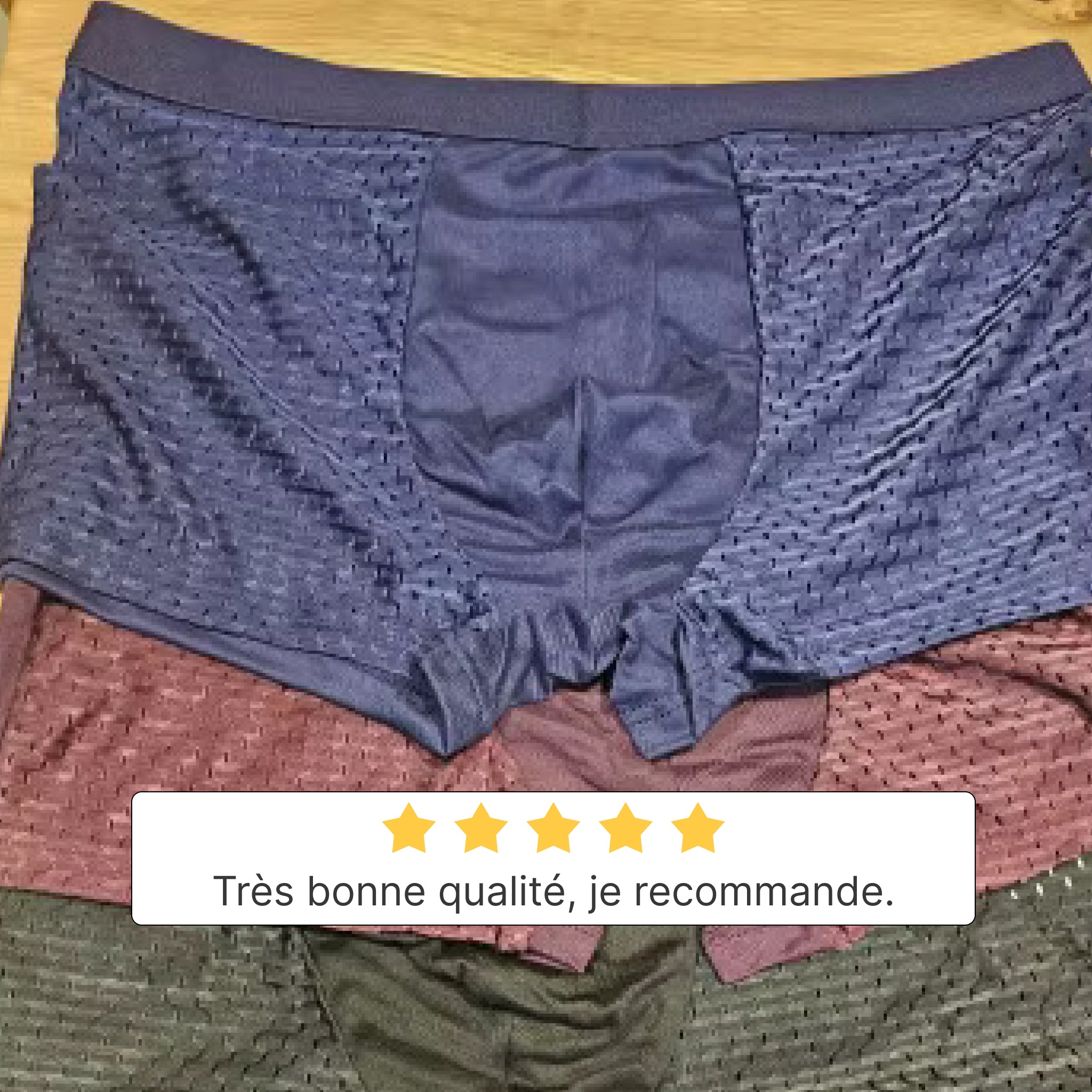Un boxer en fibre de bambou et polyester, c’est la promesse d’un confort exceptionnel. Sa matière douce et légère respire avec vous, régule naturellement la température et limite les odeurs, pour que vous restiez confiant et à l’aise du matin jusqu’au soir.